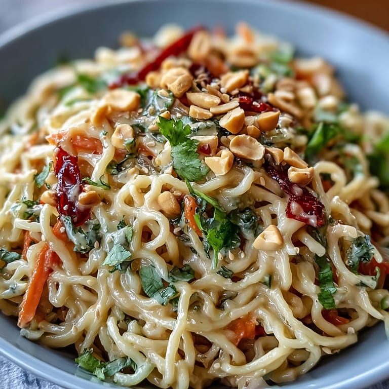 Save My neighbor brought this bowl over on a sweltering August evening when my kitchen felt too hot to even think about cooking, and I've been making it ever since. The first thing that struck me was how the peanut aroma mingled with fresh cilantro and lime—it smelled like a street vendor's cart had materialized right on my counter. What sealed the deal was realizing I could make it with whatever vegetables I had on hand, toss it together in under half an hour, and somehow feel like I'd traveled somewhere far more interesting than my backyard.