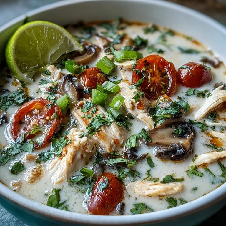 Save I used to think the secret to great Thai soup was a complex spice paste but it is actually about the gentle infusion of whole aromatics. One rainy afternoon I let the lemongrass and galangal steep while I cleaned the kitchen and the fragrance that filled the house was better than any candle. This recipe captures that specific magic where the sharp citrus notes meet the velvety richness of coconut. It is a comforting bowl that feels sophisticated without being stressful to pull together.