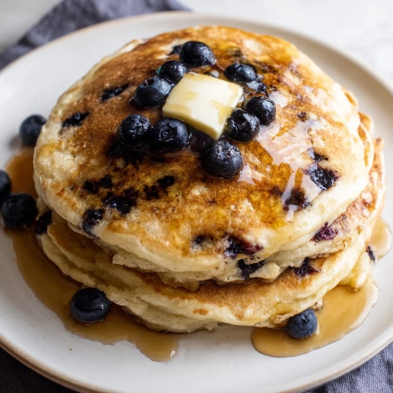 Save There's something about the smell of butter hitting a hot griddle that makes Sunday mornings feel special. I stumbled into my love for blueberry pancakes not through some elaborate recipe hunt, but simply because a friend brought fresh blueberries to my place one June morning and challenged me to make something worthwhile. What started as me nervously whisking together flour and eggs became a weekly ritual, and honestly, I've perfected this version over countless breakfast experiments where I learned that restraint with the mixing bowl is just as important as generosity with the fruit.