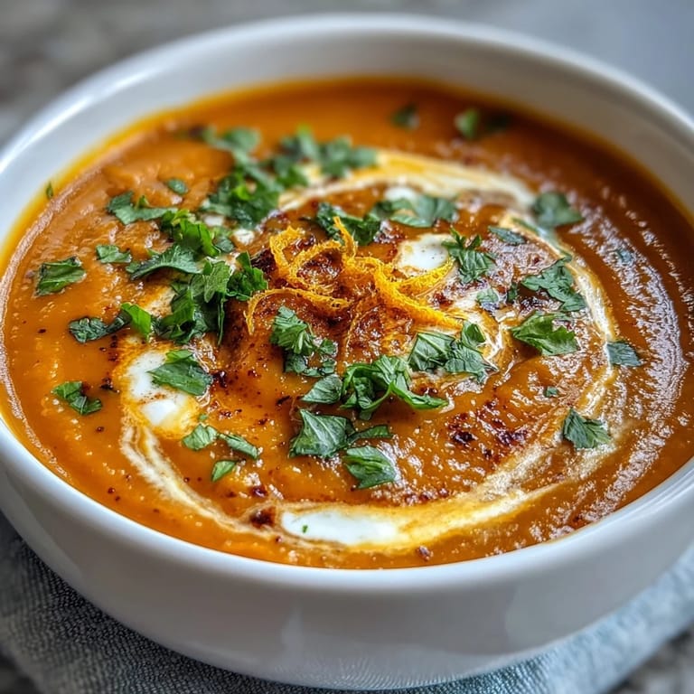 Save There is something quietly magical about a bowl of carrot and orange soup with ginger and coconut milk. It is the kind of recipe that transforms humble, everyday vegetables into something vibrant and deeply nourishing. The natural sweetness of slow-cooked carrots meets the bright citrus lift of freshly squeezed orange juice, while a generous grating of fresh ginger cuts through with warmth and life. A silky swirl of coconut milk brings everything together into a soup that feels at once comforting and elegant. Whether you are serving it as a light lunch on a cool afternoon or as a refined starter for a dinner gathering, this recipe delivers colour, fragrance, and flavour in every spoonful.