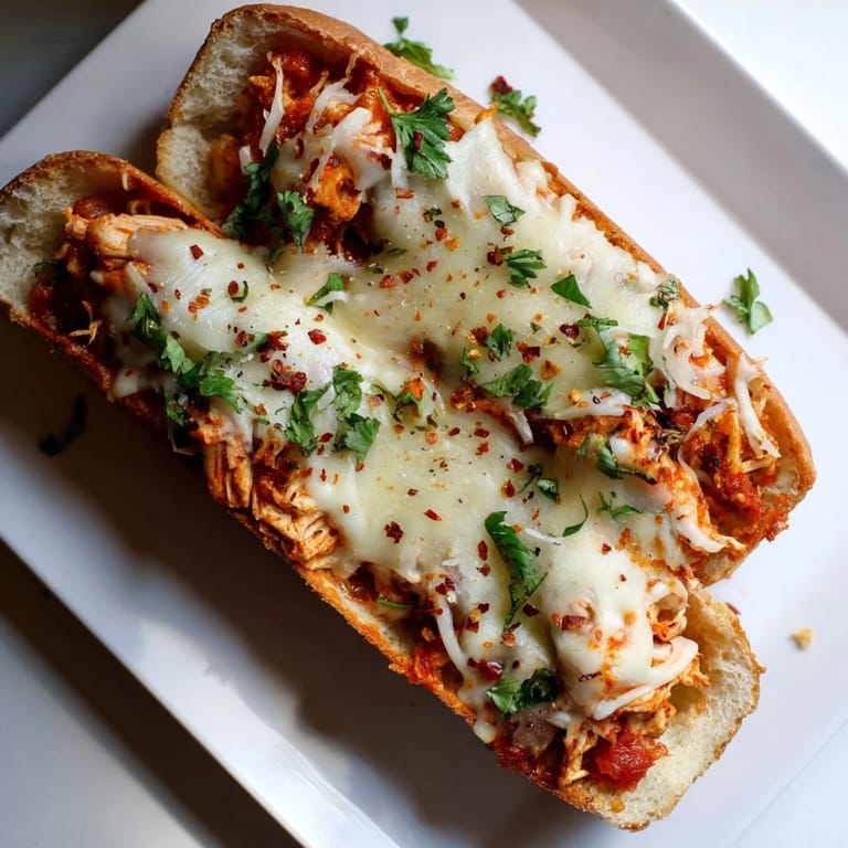 Stir sautéed spinach or roasted red peppers into the chicken mixture for added depth. Fresh basil or sun-dried tomatoes complement the marinara beautifully. A sprinkle of red pepper flakes adds heat, while garlic powder in the cheese topping intensifies savory notes.