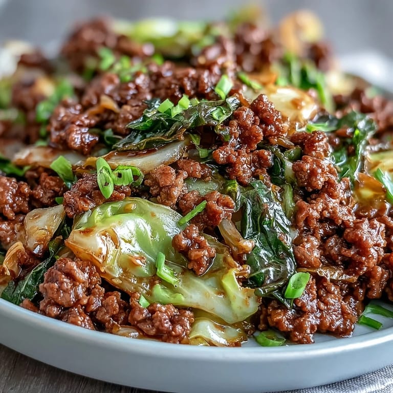 Save The smell of garlic and ginger hitting hot oil never fails to pull me back to Tuesday nights when I needed dinner on the table fast. This stir-fry became my quiet rebellion against the idea that low-carb meant boring or complicated. One pan, twenty-five minutes, and a sauce so good I stopped missing takeout. The cabbage crisps just enough to hold its own against the savory beef, and that first bite always reminds me why simple food can be the most satisfying.