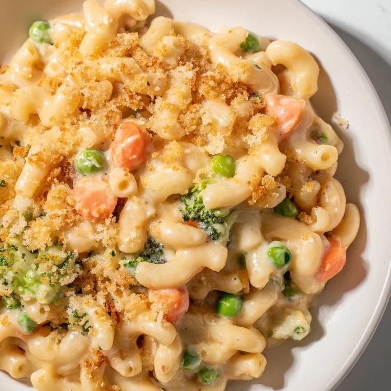 Save The smell of bubbling cheese sauce takes me back to my tiny first apartment kitchen where I learned that mac and cheese could actually be a proper dinner rather than just a blue box emergency meal. I started throwing in whatever vegetables lingered in my crisper drawer mostly because I felt guilty about eating straight pasta for dinner. One rainy Tuesday I added some frozen peas and sad looking broccoli just to make it feel more responsible and something magical happened. The sweetness from the carrots and peas cut through all that rich cheese creating this perfect balance that even my vegetable skeptical roommate couldn't stop eating. Now it is the only way my kids will eat their greens without negotiation.