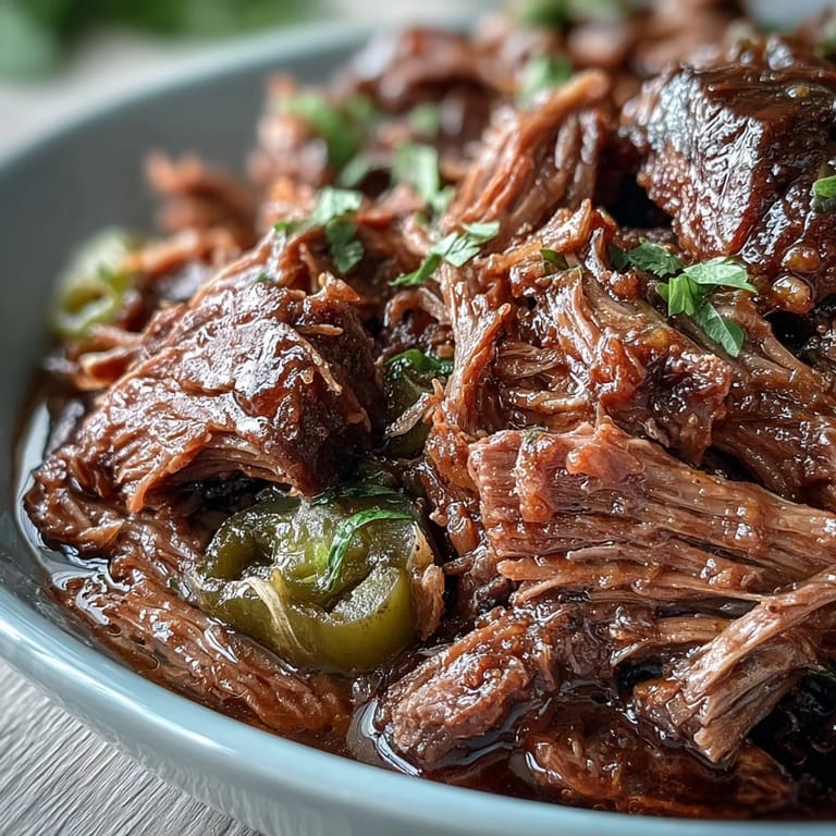 Save My neighbor handed me a slow cooker recipe scribbled on the back of a grocery receipt one afternoon, insisting I had to try this Mississippi-style beef situation. I was skeptical—the ingredient list felt almost too simple, just a chuck roast, two seasoning packets, pepperoncini peppers, and butter. But eight hours later, when I lifted that lid and the kitchen filled with this tangy, savory steam, I understood exactly why she'd been so adamant. The roast had transformed into something impossibly tender, swimming in a rich, briny gravy that tasted nothing like what those packet mixes suggested they could do.