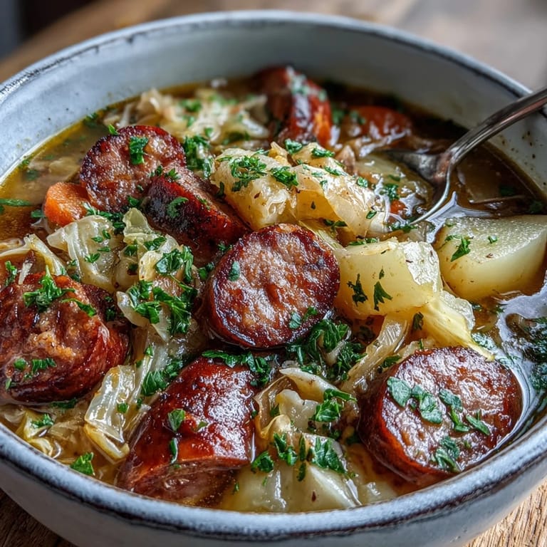 If you want to switch things up, try using spicy andouille sausage for a kick, or swap the green cabbage for savoy if you want something more delicate. Sweet potatoes in place of regular potatoes add a subtle sweetness that's really lovely, and if you're out of fresh thyme, a pinch of dried oregano works in a pinch. I've also stirred in a handful of kale during the last five minutes of cooking when I needed extra greens, and it folded right in.